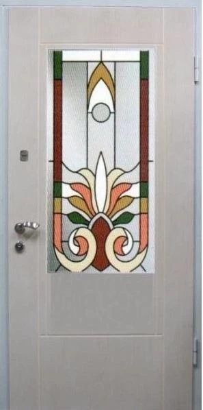 Входные двери в Сестрорецке с применением декора витражом изготавливаются из стального профиля, придающего прочность конструкции, а сама витражная вставка обладает высокой взломостойкостью, поскольку для витражных композиций используется специальное стекло, обработанное особым образом. Усилить надежность витражного элемента можно с помощью использования декоративных кованных решеток.