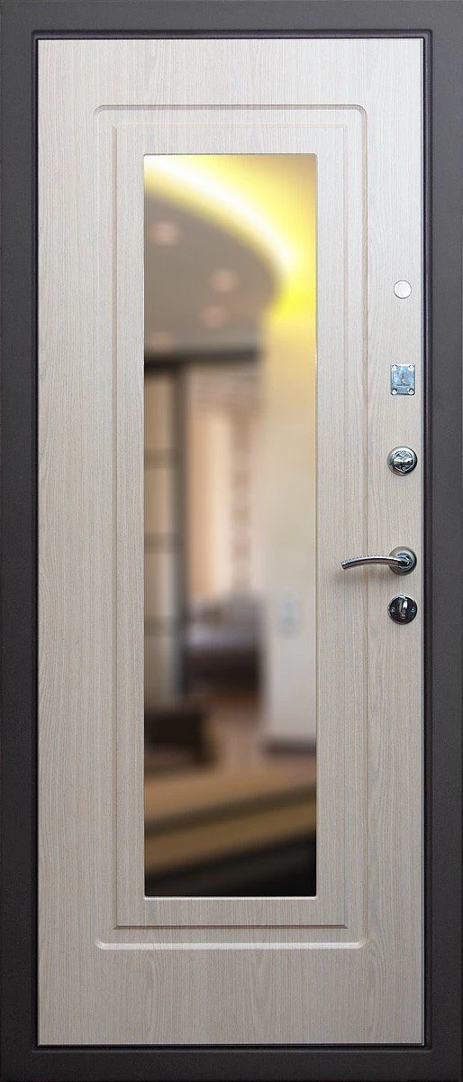 Прочная металлическая Дверь с зеркалом DZ385 по цене от 30 000 руб. под заказ в любой комплектации. Вы можете выбрать материал, замки, цилиндры и многое другое. Производим сами! Быстрая доставка и установка в Зеленограде.