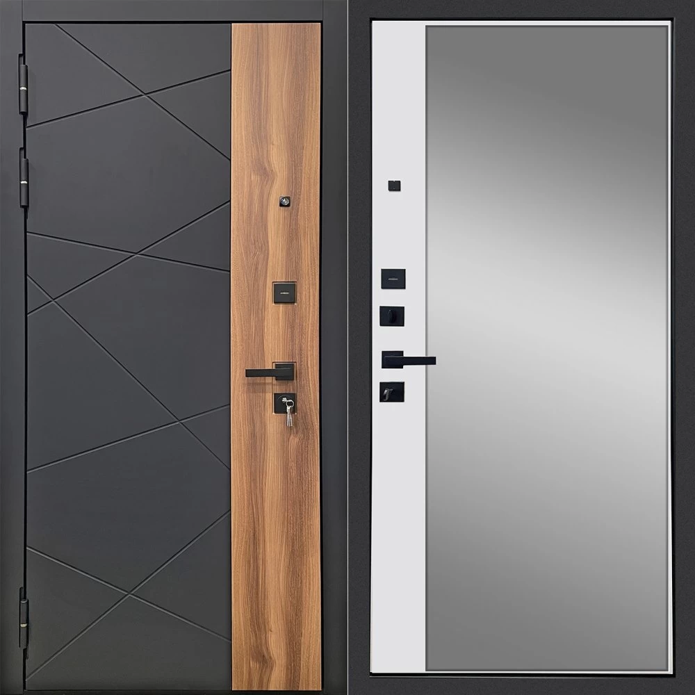 Дизайнерская входная Дверь Ратибор РАКУРС 3К ЗЕРКАЛО класса Люкс с несколькими листами стали, звукоизоляцией и теплоизоляцией. Утепленный короб и полотно защитят от сквозняков и шумов. Модель не только надежная, комфортная, защищенная и высочайшего качества, но и очень красивая! Будет отлично сочетаться с интерьером дома, квартиры или офиса. Сейчас действует выгодное предложение по цене: 54 985 руб.
